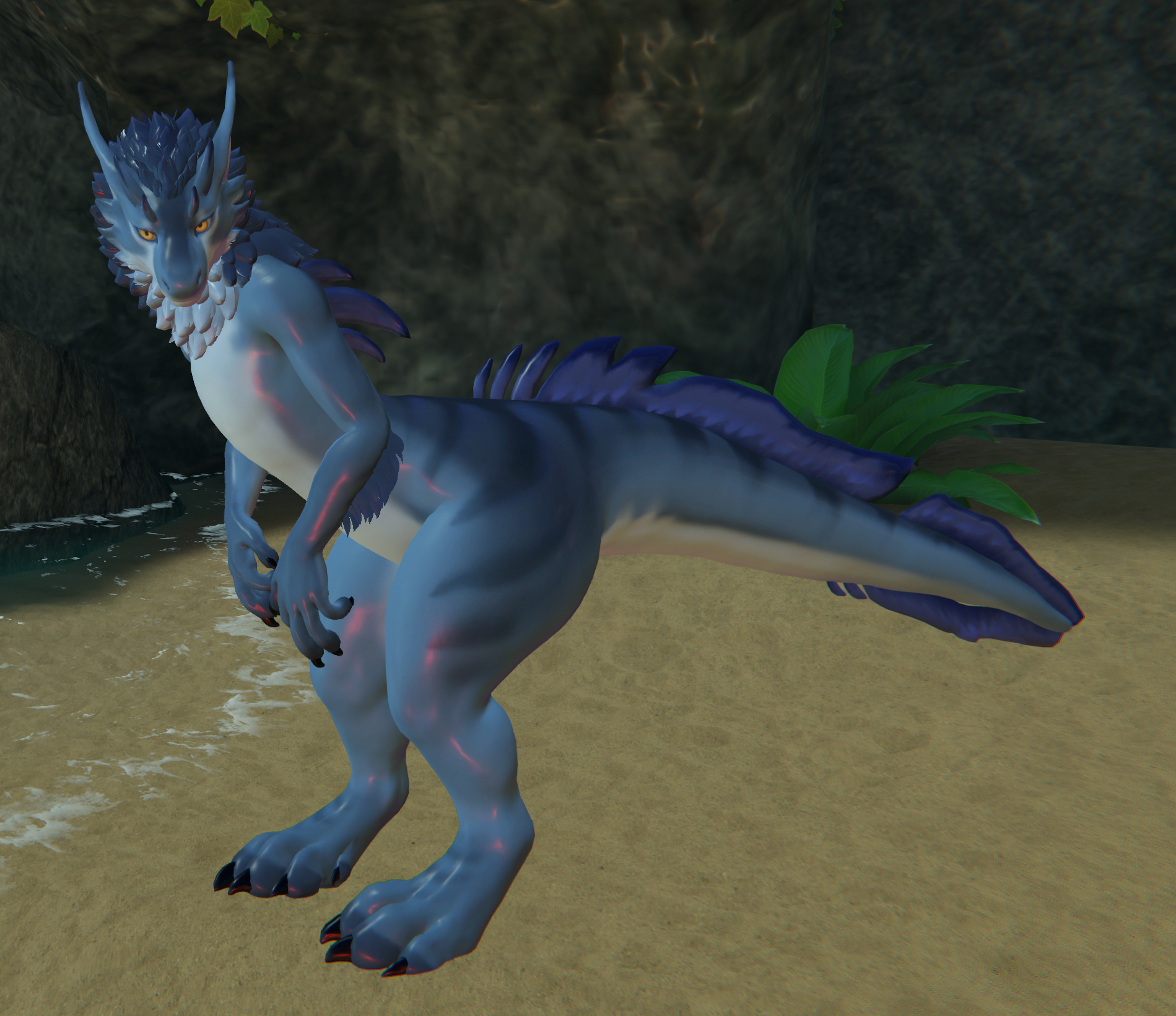 Enesk avatar for VRChat! A dragon type creature based on a character of mine, Eneth. This was a personal project and big learning experience. And the first avatar I've fully set up myself in Unity, and substance painter.
